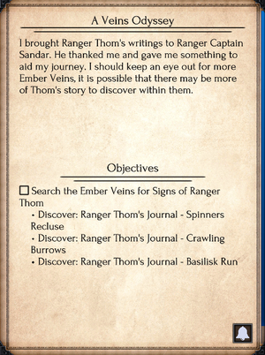 Ranger Captain Sander now wants you to find journals in 3 more solo Ember Veins.