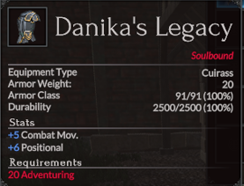 Reward for completion of the Armorsmith class quest Restoring a Legacy