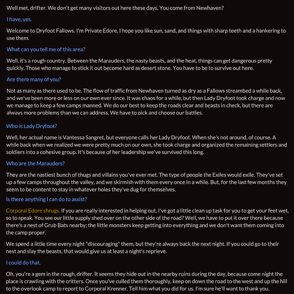 Starting Zone: Dryfoot[edit]