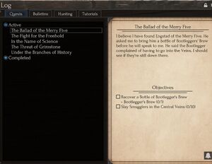 Engstad won't talk to you unless you bring him a bottle of Bootleggers' Brew and you will also be required to slay 10 smugglers in Central Viens. Go to CV1 and find "Bootleggers", the brew is not a guaranteed drop so you may have to farm some.