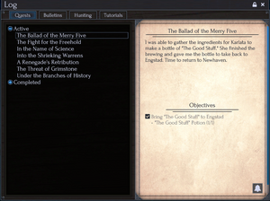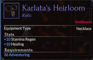 After collecting all the things Karlata wants she will craft you a potion called "The Good Stuff", and you will need to take this to Engstad. You will get a recipe for the potion "The Good Stuff" unfortunately it is Soulbound. Engstad will then want you to get Karla's Helm and kill Garr.